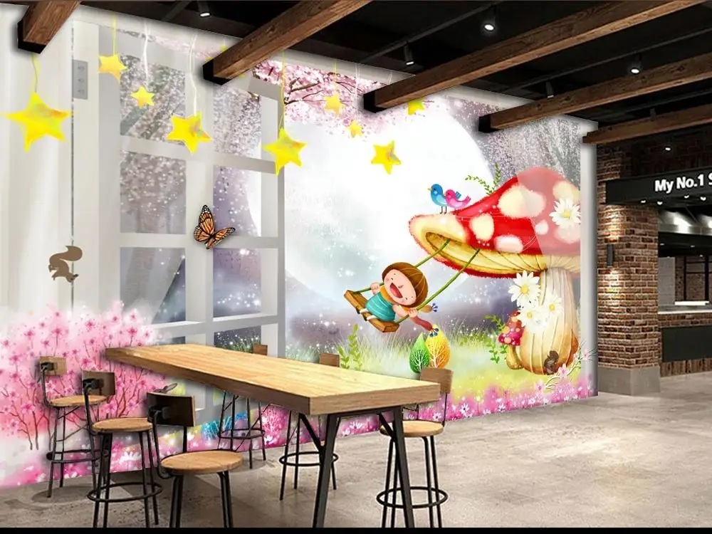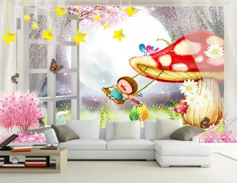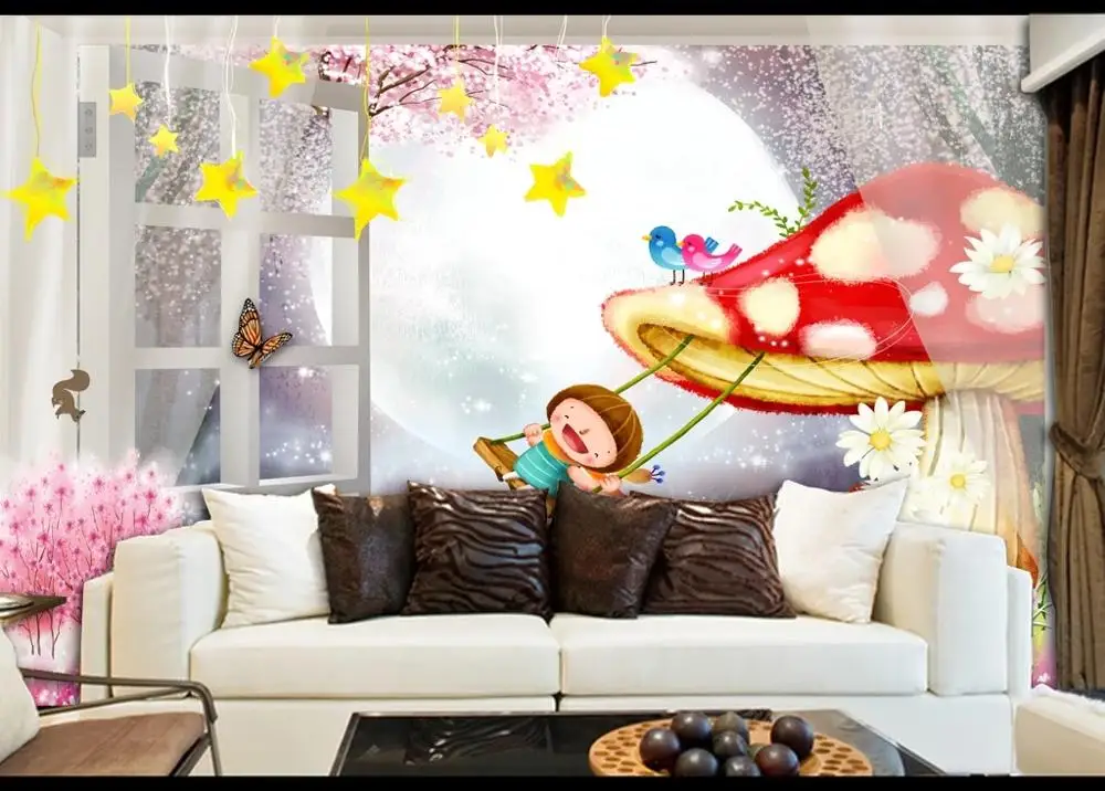 Dear my personal favorite New Custom large mural 3D wallpaper Fake window mushroom girl swing children #039;s bedroom mural TV back wall decor deep 5D embossed RECOMMENDED TODAY